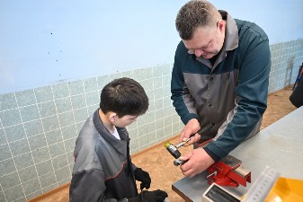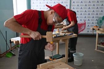 Андрей Геннадьевич Степанов провел мастер-классы в компетенции «Столярное дело». Ребята изготовили подставку под телефон и детскую игрушку. Под руководством мастера все справились с заданиями.