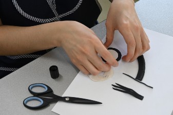 Следующий мастер-класс по компетенции «Швея» был тоже интересный и познавательный. Под руководством Ольги Михайловны Сидоровой девушки изготовили игольницу из флиса в виде шляпки.